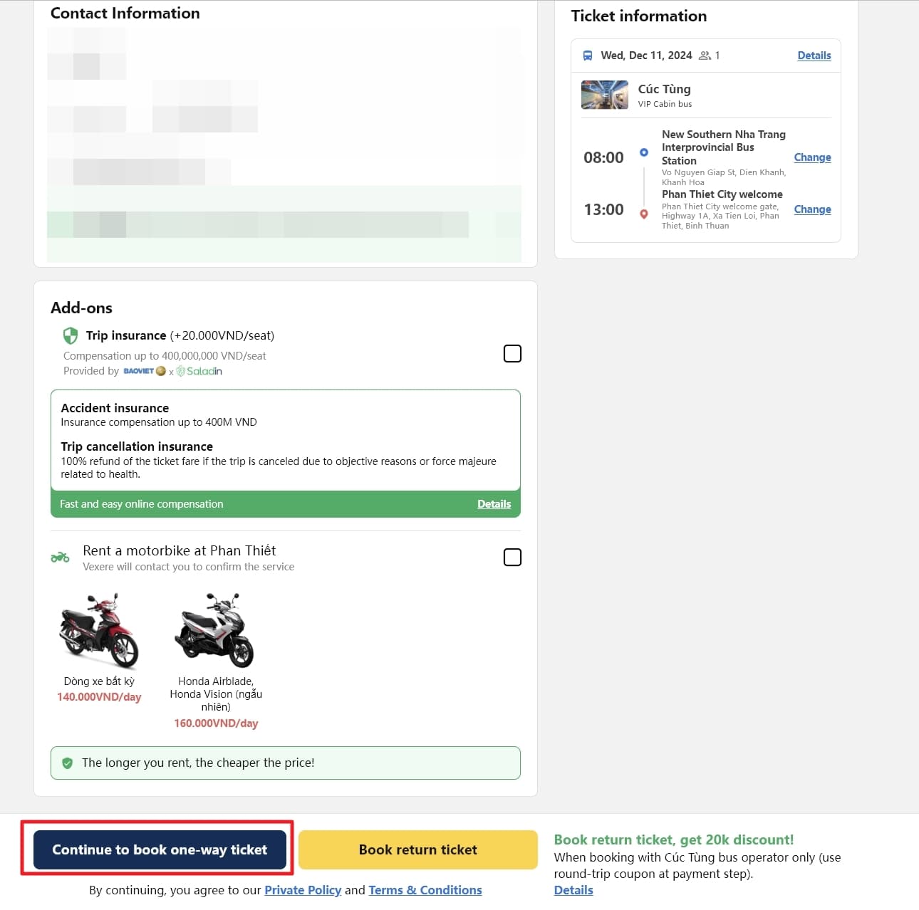 출발지는 Nha Trang, 도착지는 Phan Thiet 이라고 입력. 날짜를 선택 후 Search 버튼을 누르세요.