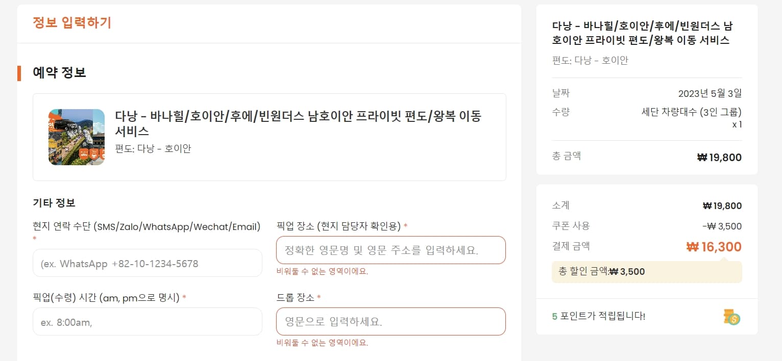 - 다낭 공항에서 호이안으로 바로 가고 싶다면? → 프라이빗 카 서비스