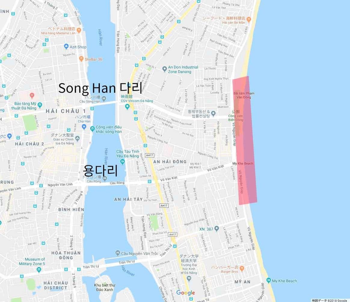 다낭 시내에서 해안쪽으로 방문하실때 보통 Song Han다리나 다낭 용다리를 이용하실 겁니다.