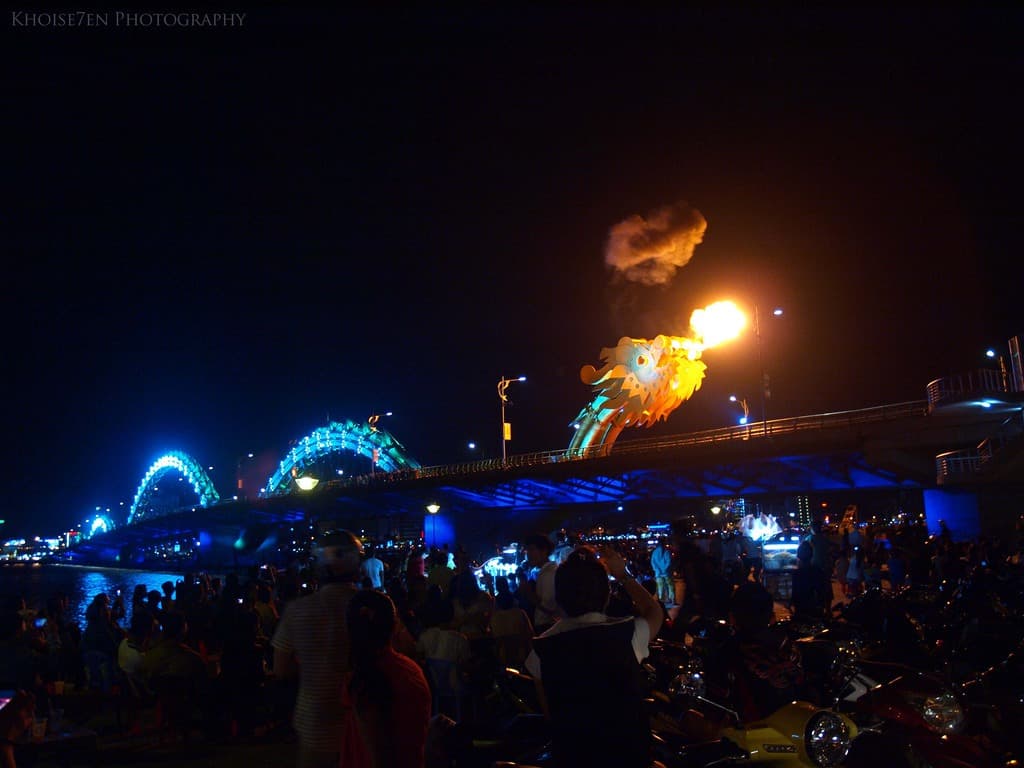 이벤트가 진행될때에는 다낭 현지 주민 및 관광객들로 매우 붐비며, 꽤나 가까이서도 감상도 가능합니다