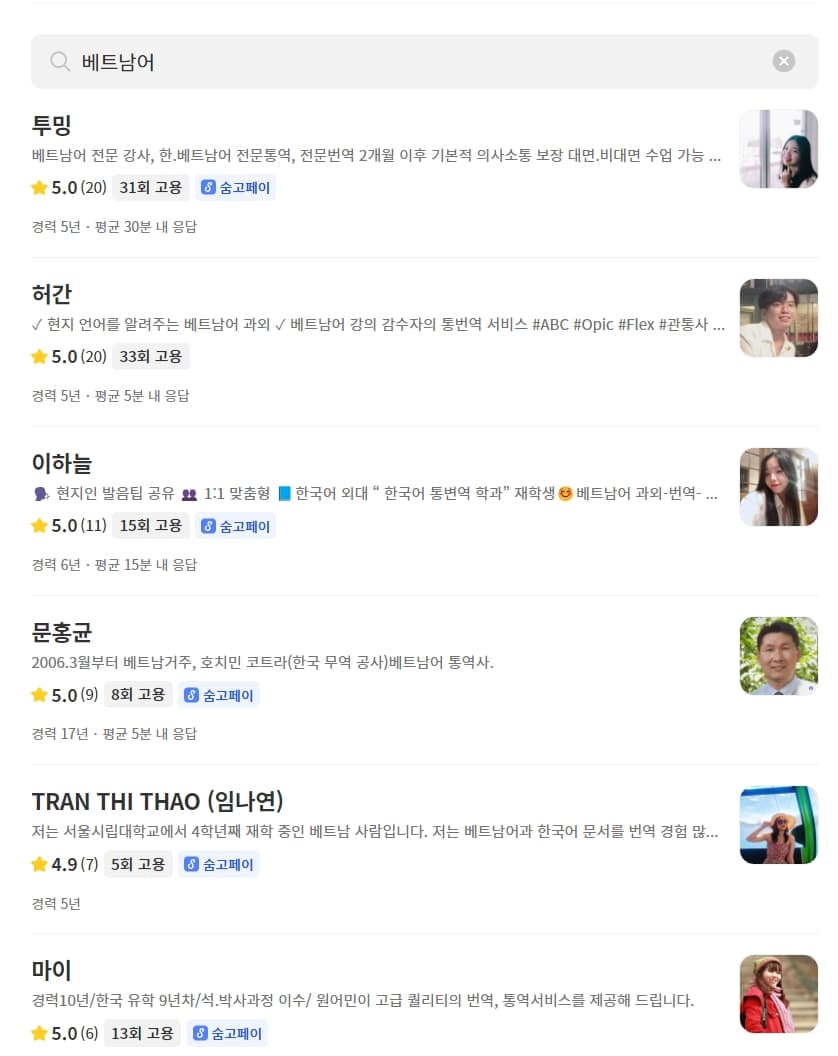 베트남어 과외를 구할 수 있는 곳