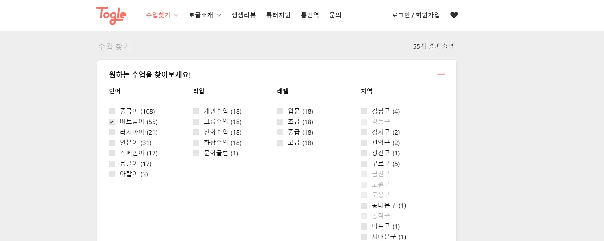 - 토글, 숨고와 같은 과외 사이트에서 검색