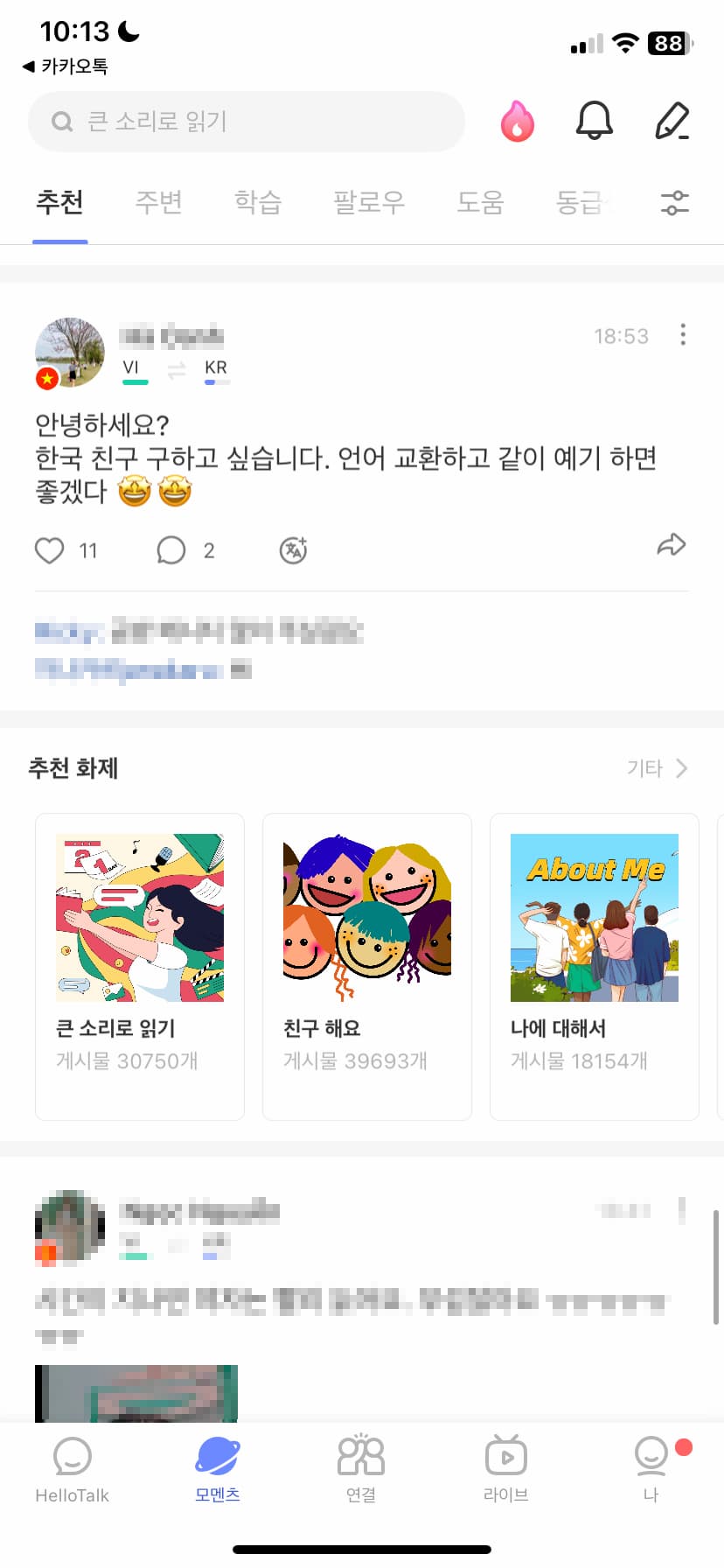 그나마 있던 소규모 언어 교환 채널도 코로나를 거치며 씨가 마른 수준이고요. 그래서 언어 교환할 상대방을 찾기가 매우 어렵습니다.
