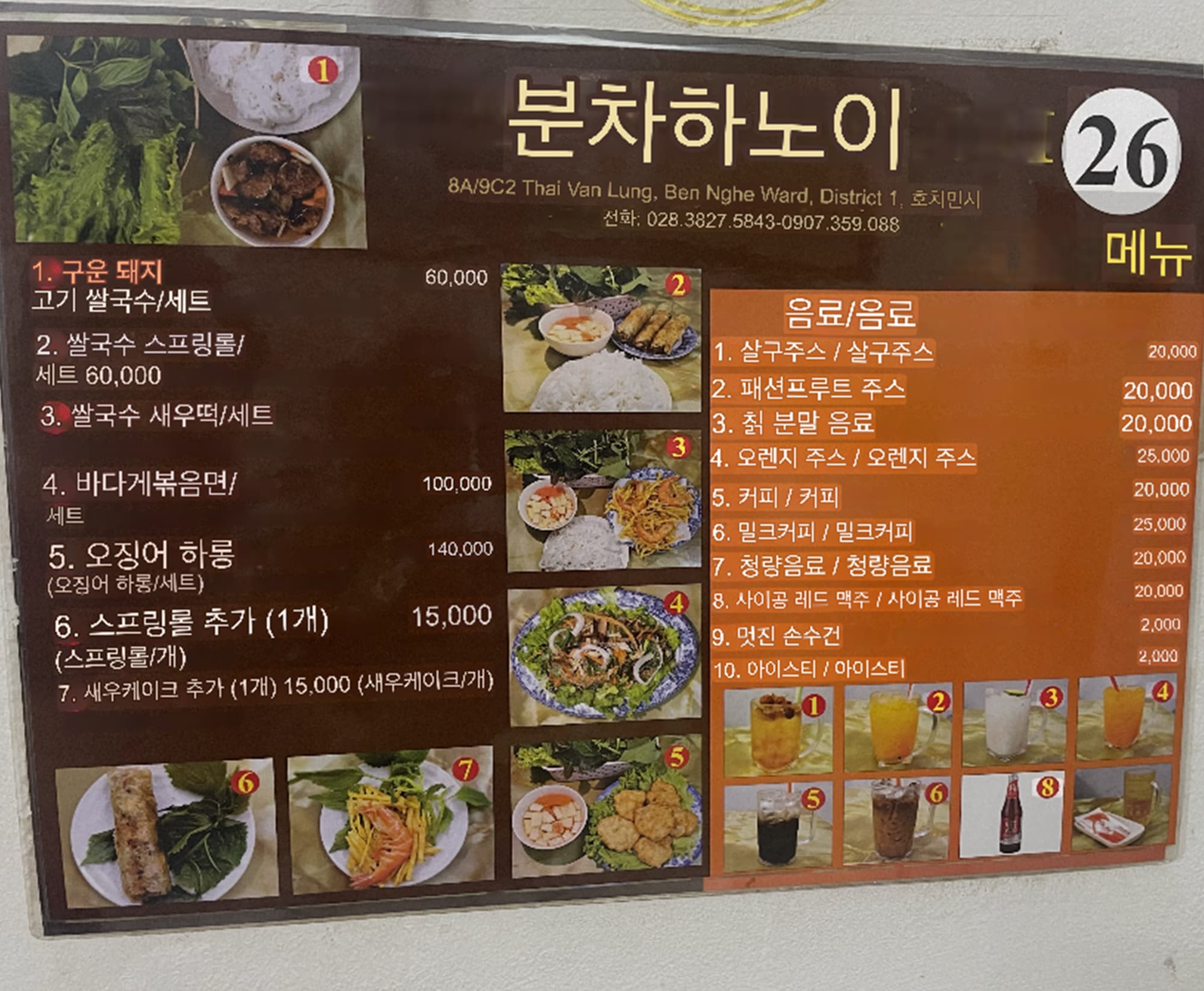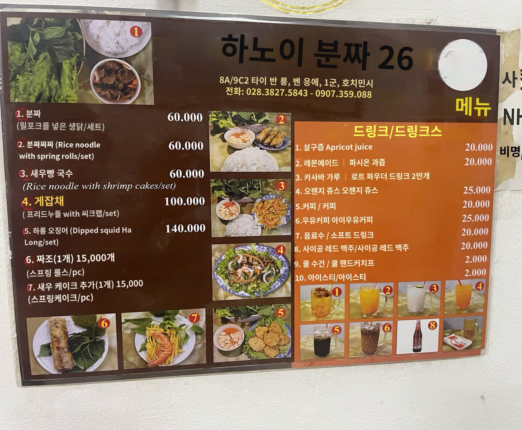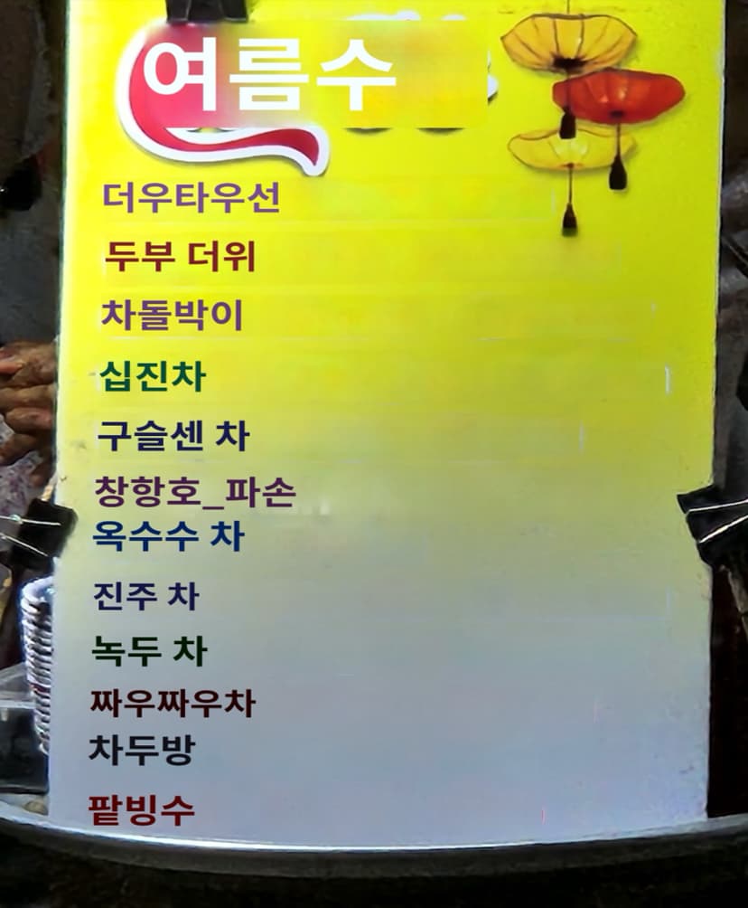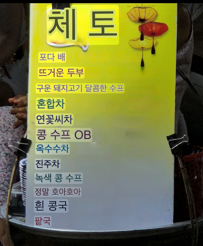 위 사진은 로컬 식당의 메뉴판이고, 아래는 길거리 음료 매대의 메뉴판입니다.
