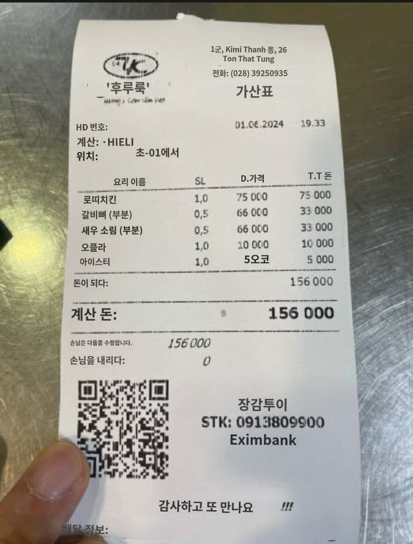 영수증 번역에서는 두 번역기의 성능 차이가 확연히 드러납니다. 구글은 거의 완벽하게 번역했어요! 메뉴 일부에 부정확한 부분이 있지만, 계산한 직원의 이름부터 상점 주소, 금액, 지불 방법, 고객이 지불한 돈까지 모든 정보를 이해할 수 있었습니다.
