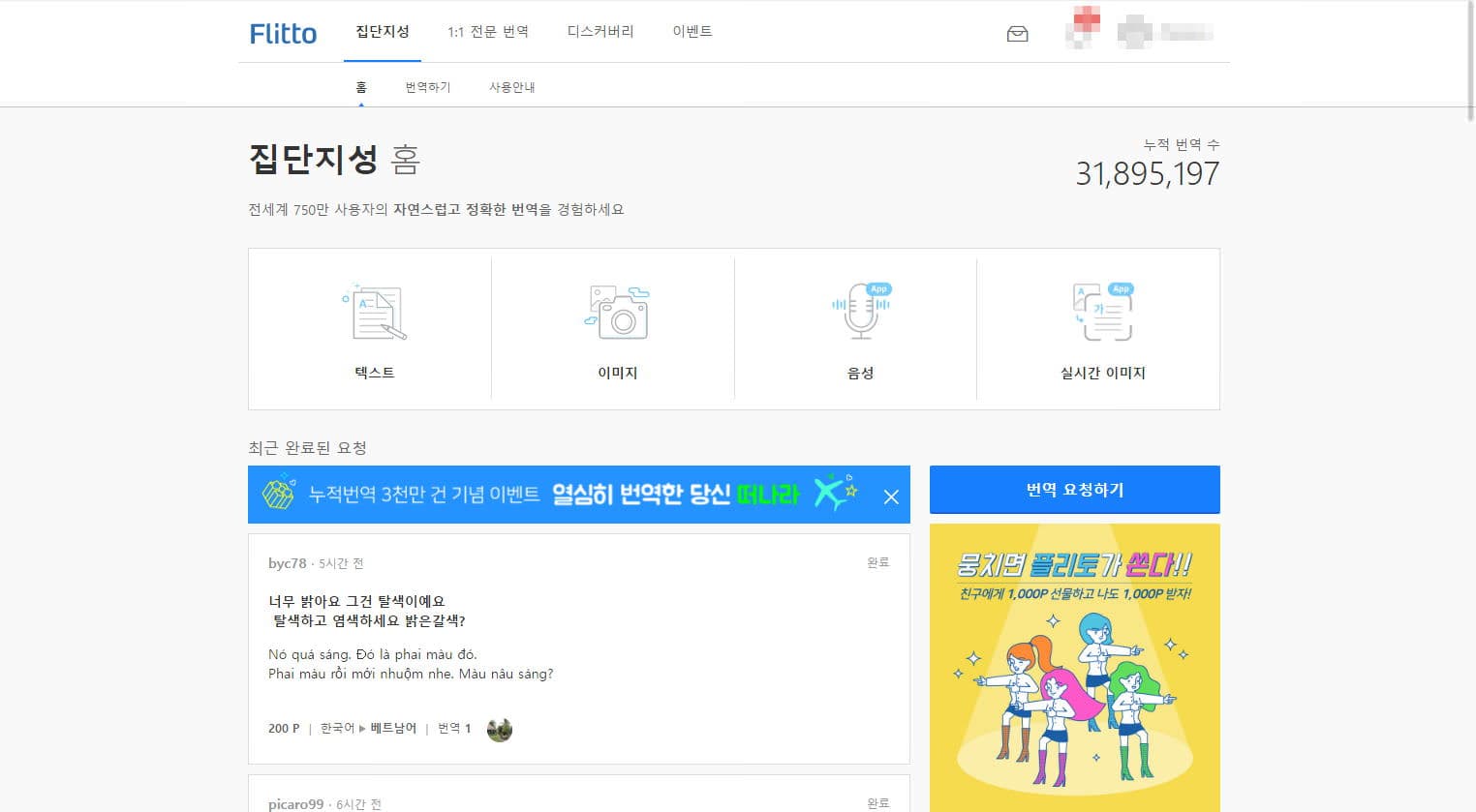 2. 플리토(Flitto)로 빠르고 합리적인 번역 받기