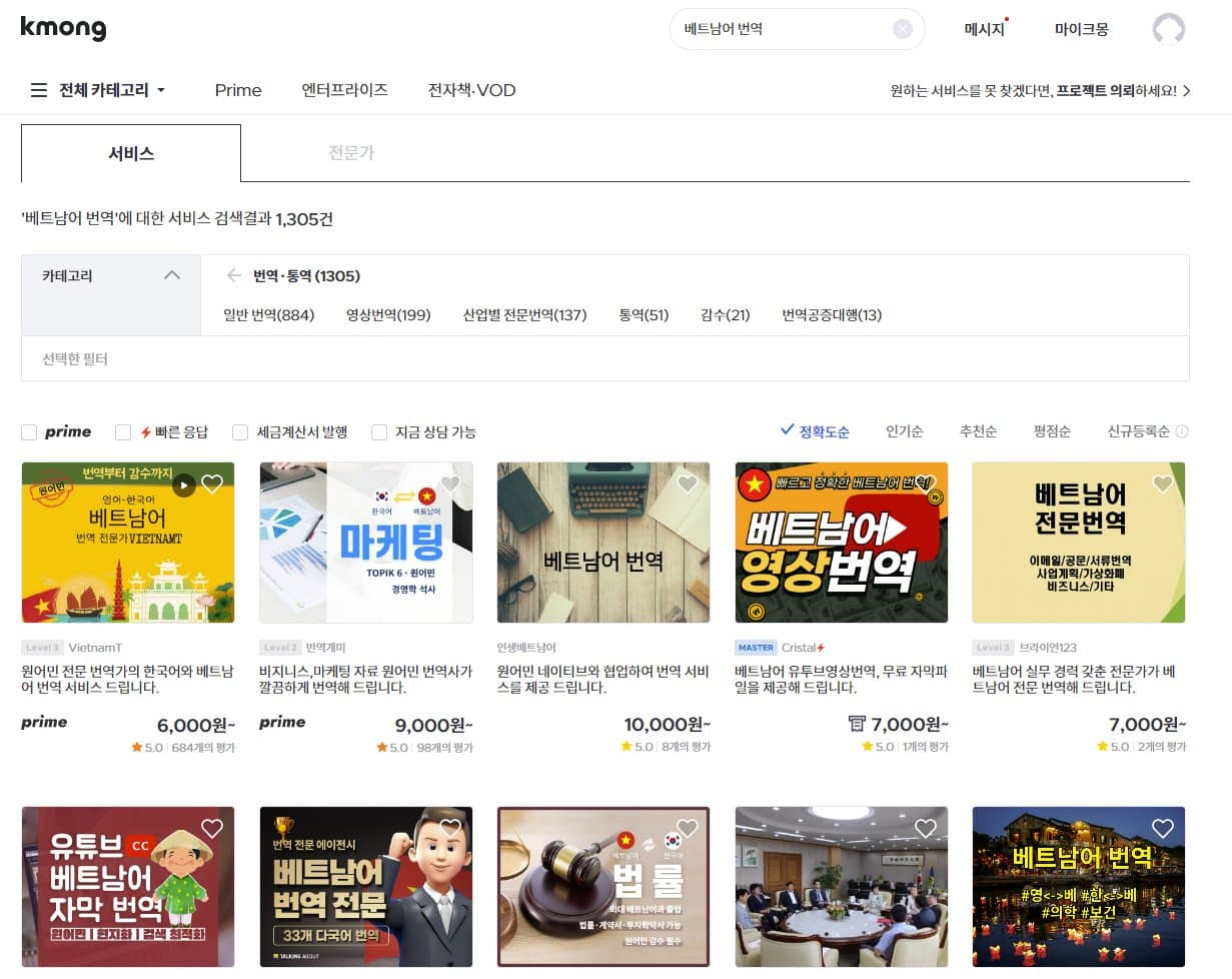 3. 크몽에서 한국어-베트남어 전문 번역가 찾기
