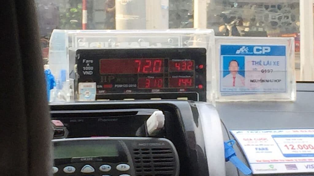 예를 들어, 미터기에 72.0이라고 표시되어 있다면 실제 요금은 72,000동(약 3,800원)입니다. 소수점 이후 숫자는 무시하고 앞의 숫자에 1,000을 곱한 금액을 지불하면 됩니다.