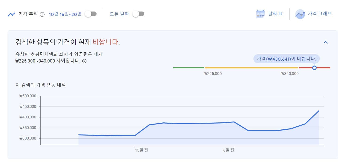 이 기능만 잘 활용한다면 베트남 항공권을 예약하는데 최적의 시기를 쉽게 확인할 수 있습니다.