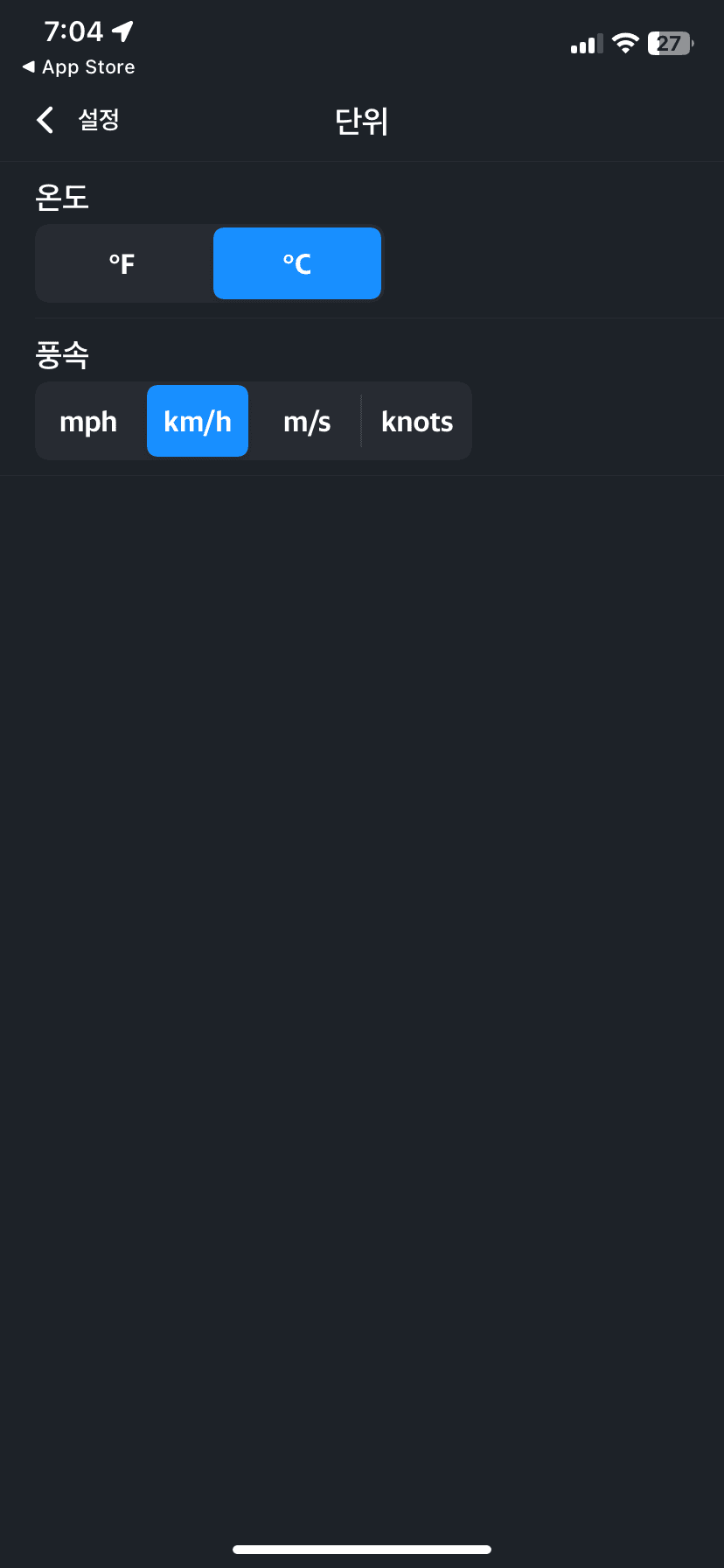 비록 한글이 아닌 영어입니다만, 날씨 표시는 주로 아이콘으로 나와 있으며, 기온 등은 영어와 상관없이 알 수 있다고 생각합니다.