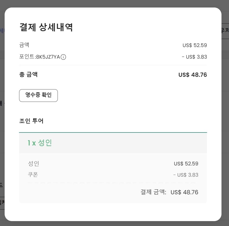 - 클룩, 부킹닷컴 등 투어 에약 사이트를 통해 예약