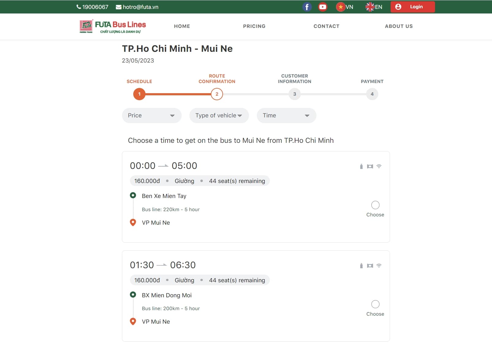 Futa Bus의 공식 홈페이지는 호치민에서 무이네까지 운행하는 버스와 좌석의 선택, 실시간 예매 현황부터 결제까지. 영어로 쉽게 알아볼 수 있도록 만들어져 있습니다.