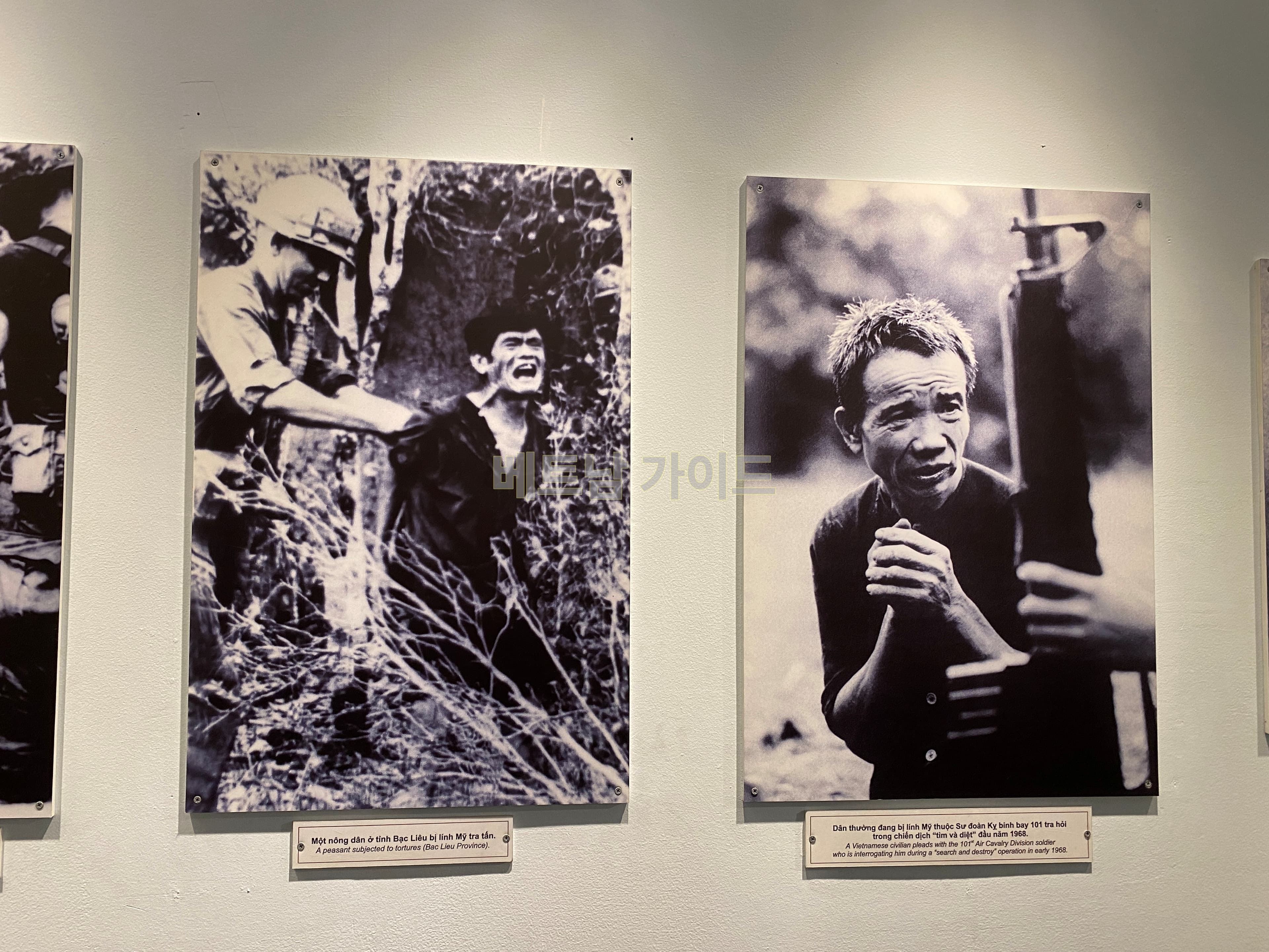 많은 사진 가운데는 보는 사람에 관해 혐오감을 느낄 수 있는 사진이 그대로 전시되어 있습니다. 예를 들어 목이 잘린 베트남 포로의 사진이나,