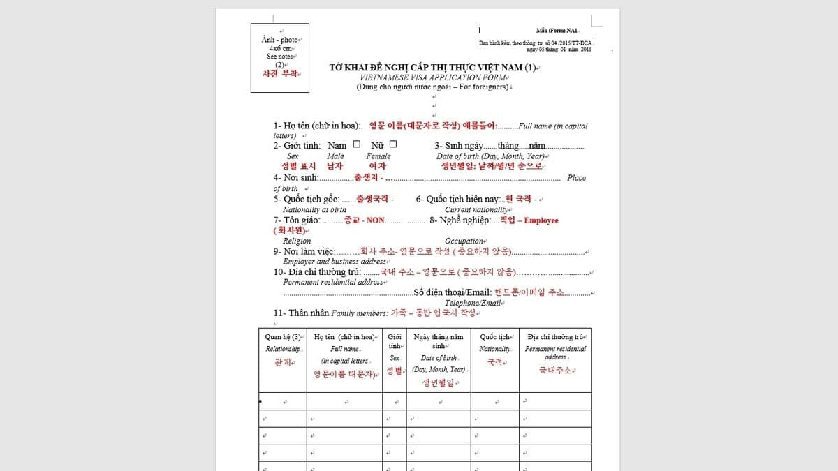 - 노동 비자: 베트남 회사에 정식으로 취업하거나 주재원으로 발령받아야 합니다.