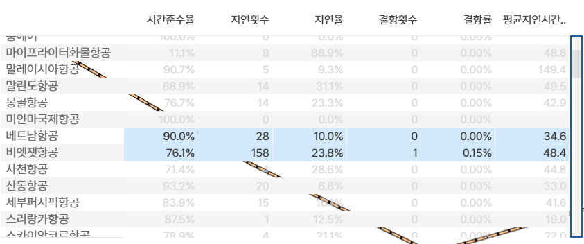 다른 베트남 항공사들의 평균 정시 운항률은 70 ~ 80% 정도지만, 비엣젯은 55%로 압도적인 꼴등이에요.