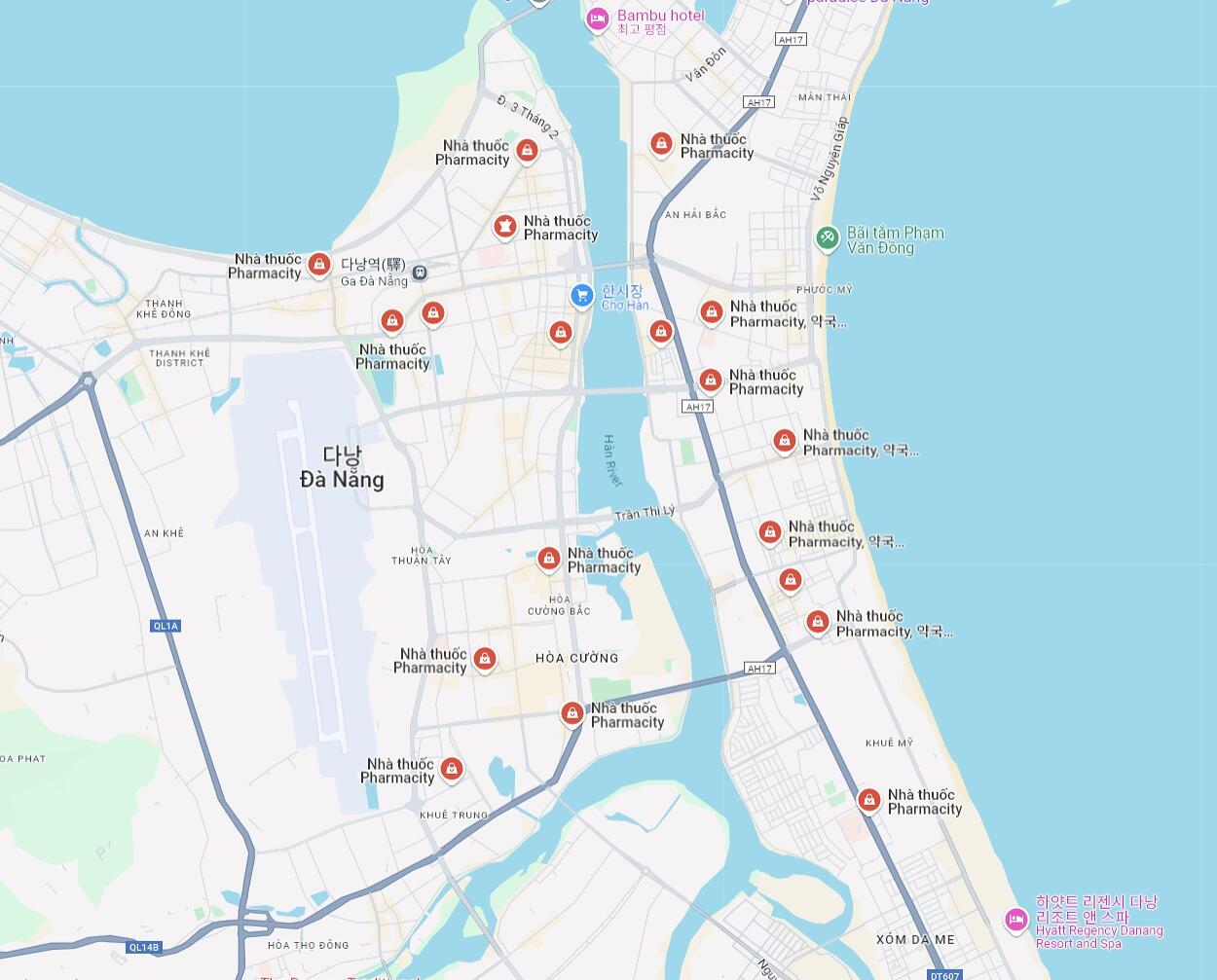 The image below shows a Google Maps search for these brands in Da Nang. There are dozens of them. Honestly, it makes me wonder why there are so many pharmacies in Vietnam.